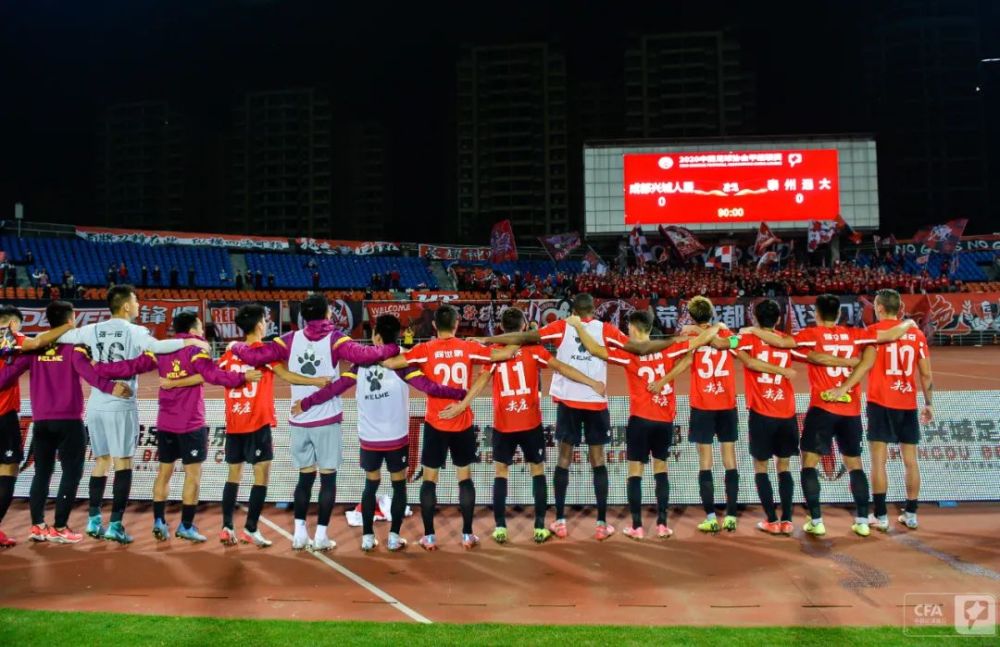 在国内疫情得到控制的背景下,本赛季中甲联赛有限开放了一小部分场次,虽然购票、入场程序要比往年繁琐,但是还有不少球迷追随主队来到比赛现场加油助威。特别是成都赛区,从开幕式到冲超大战,每场几百人、上千人的球迷们,热情始终在赛场“燃烧”。11月4日,在冷雨中成都兴城人居遗憾告负浙江能源绿城后,成都球迷赛后雨中大合唱成为经典,“他说风雨中这点痛算什么,擦干泪不要怕,至少我们还有梦!“感动不仅在成都,在常州和梅州赛区,即便球迷数量有限,但跨越千山万水而来的他们,响彻全场的呐喊同样激励着场上的每一个球员。