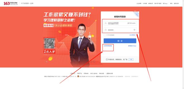2、使用自己的网易邮箱账号密码登录,如果没有账号的话,就注册一个