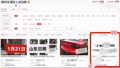 1月21日,山东日照东港区人民法院依法拍卖尾号“88888”手机号的使用权。李先生以21万元胜出。他说:“平时喜欢这些东西,总共买了四五个吉祥号,都是自己用,号码加起来大约值四五十万元。”尾号“88888”的手机号使用后,一小时能有二三十个电话进来。网友觉得那就是“发发发发发”的意思,非常值得购买这手机号。还有网友说:这是要从事开锁行业吗?