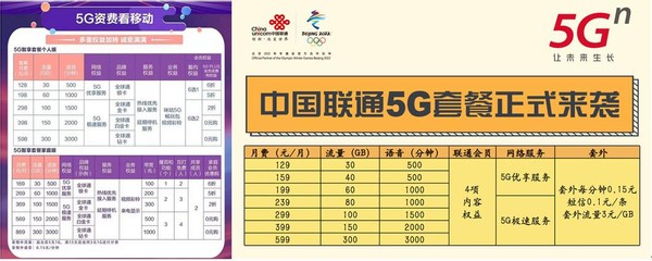 运营商之所以如此热衷的宣传5G网络,无外乎是为了推销出更多的5G网络资费套餐,提前抢占5G网络用户,为了将来的5G网络市场打下基础。5G网络资费套餐有个特点,那就是起步价较高,简单点来说一个字“贵”!三大运营商横向比较,资费较高的当属中国移动,我们还是拿价格相对较低的中国联通5G套餐来举例说明。例如入门级的套餐就需要129元,包括30GB的流量已经500分钟的语音通话时长。