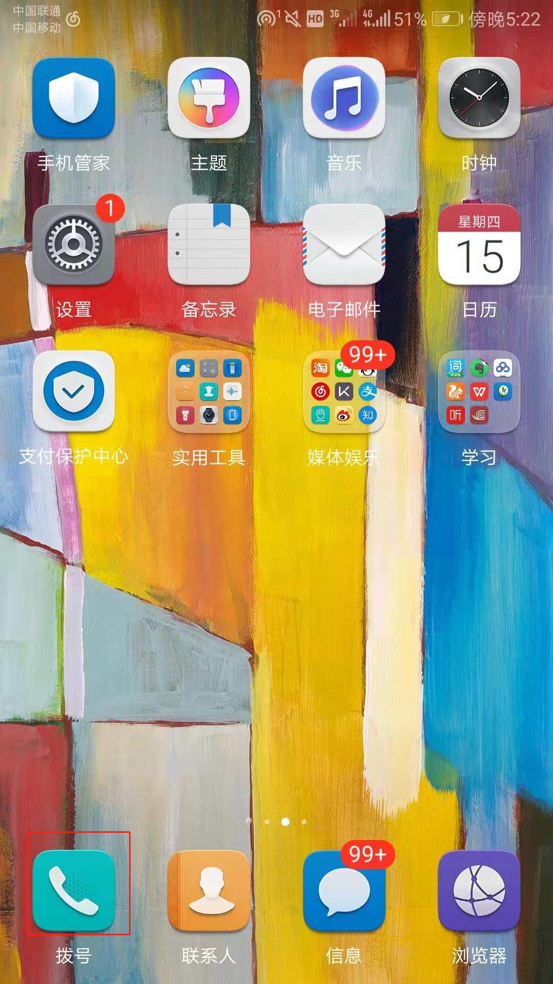 1、打开手机的主页面,找到“拨号”这个APP,如下所示。