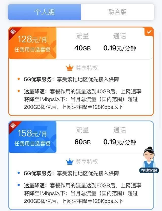 咱们以中国移动的5G套餐为例子,如果你是中国移动的老用户,那么可以更换5G套餐理论最便宜的价格为128元每月,流量为40GB,这个流量其实对于个人来讲完全够用了,只要不经常下载一些大视频或文件。