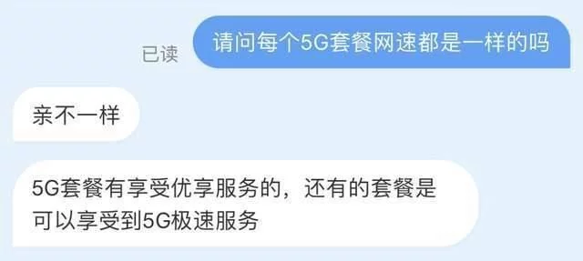 翻了翻中国移动掌上营业厅的5G套餐,我并没有找到不同价位不同网速的说明,但是询问中国移动客服,官方明确表示了:5G套餐网速是不一样的。其次5G套餐还分为“基础服务”和“优享服务”,优享服务指的是在5G基站繁忙时可享受优先接入的权利。