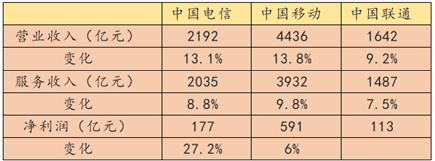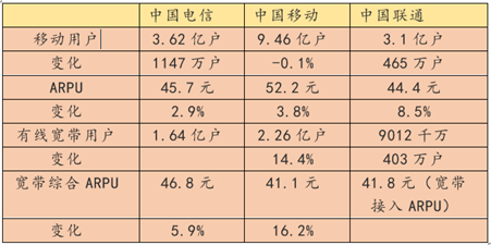 收入和利润双双大幅增长,背后是运营商在用户规模和单用户收入方面的双双良好表现,从移动业务和有线宽带来看,三大运营商的业绩均有可圈可点之处。