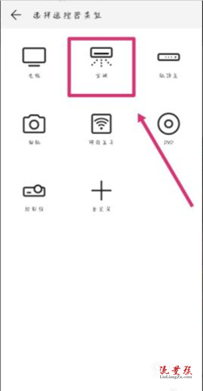 按需选择想要控制的设备,此次以空调为例,点击“空调”选项。