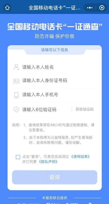 全国移动电话卡“一证通查”