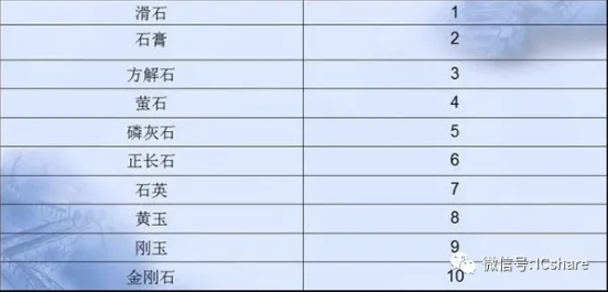 上图是一张莫氏硬度表,手机膜防护不到的事手机屏幕本身却能轻松抵挡,那还用贴膜防爆?