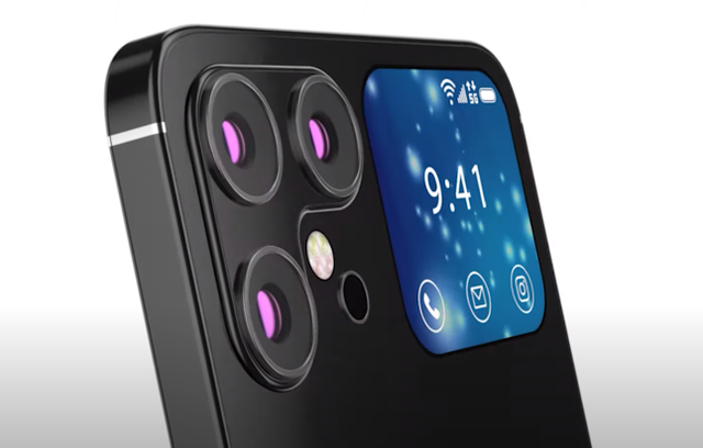 根据国外数码媒体公布的概念图,iPhone14可能会在背部加入一块圆角矩形副屏,用以显示通知信息,这一消息并不是空穴来风,因为早前曝光了苹果副屏相关专利,所以这项技术被应用在iPhone上的可能性并不是没有。