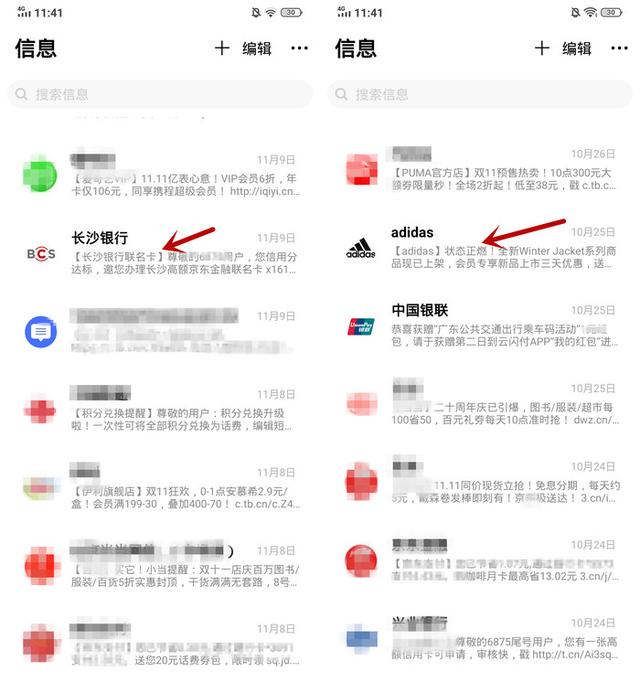 在信息App后,便有许多各种短信验证码,这里就是用自己手机号注册过的一些App资料。
