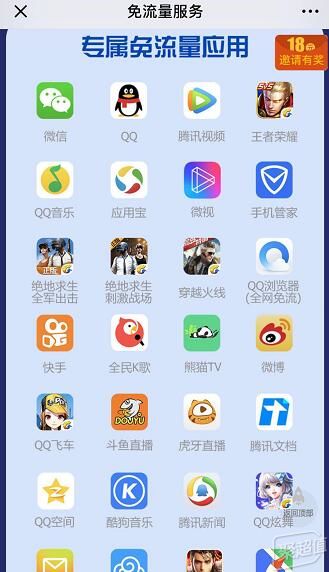腾讯王卡一看名字就知道是腾讯软件专用流量卡,而且它除了腾讯应用免流外,还有其他合作的应用也参与免流,在微信关注“王卡助手”公众号后,可以选择申请开通。王卡有三种:大王卡、地王卡、天王卡。这也是小编最喜欢的套餐,随时可以玩绝地求生和王者荣耀,聊微信的时候也不怕狂刷表情包。