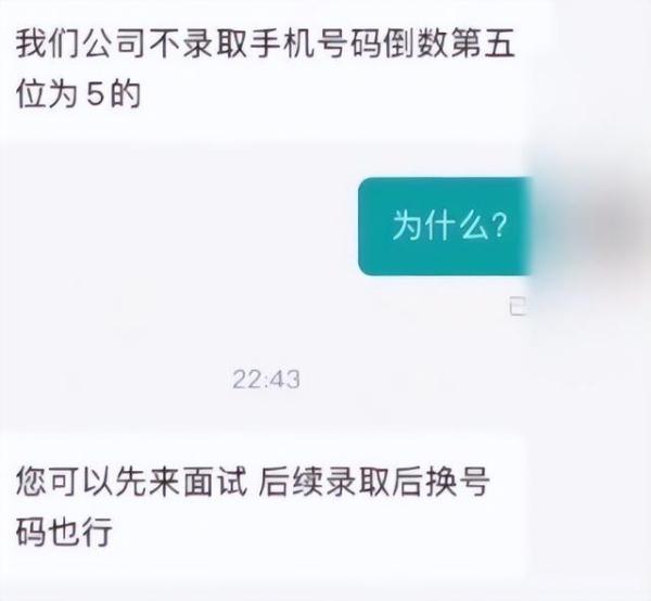 公司不聘用手机号倒数第五位是5的人?员工:老板要求,可入职后换号