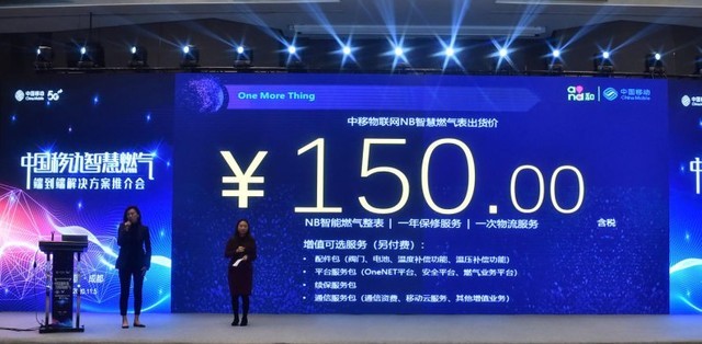 借助此次推介会的机会,中移物联网副总经理唐亚琼,联合东发集团总裁柳明女士共同发布了中国移动版物联网燃气表整表套餐价格---“150元/套”。