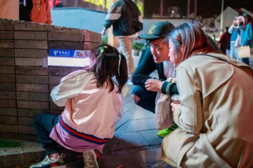 另一位朋友说她前两天去商业街淮海路,傍晚闲逛时发现了一个绝对意想不到的“景点”,街边矮墙残破的砖块被巧妙地填充进了一个“电信营业厅”,并用了“城市的一盏灯”这个短语来描述她当时的感受。随后她发来数十张照片:傍晚的、入夜的、中景的、近景的、特写的、静静角落的和市民围观的……