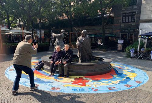 我在群里并没有多说,只是暗暗拜托她 (作为一个广告创意人和城市人文关切者) 能不能再留心下上海还有没有这样相似的艺术作品。果然,她一发不可收,搜索网络加上询问朋友再加现场感受,给我发来了数十张照片。于是我看到了更多的惊喜和震撼,商业街角的微缩营业厅、5G覆盖街区的地名墙、新天地雕塑的喷泉祥云、时尚商场的大门彩绘、滨江公共区域的艺术彩绘、江畔船舶系缆桩的涂鸦……它们是如此丰富和精美。