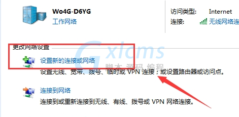 3、在网络和共享中心窗口,选择更改网络设置列表下的“设置新的连接或网络”。