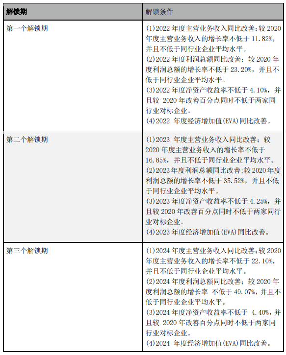 公告显示,公司和激励对象满足以下条件,限制性股票方可按照解锁安排进行解锁: