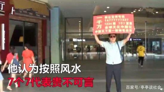 根据网友口述,在大街路上有一名男子他站在空地上,手里举着一个牌子。在这个牌子上面写着:出售手机号码, 1234顺,7个7富贵等等。而且他还在上面明码标价这些号码要价1000万。