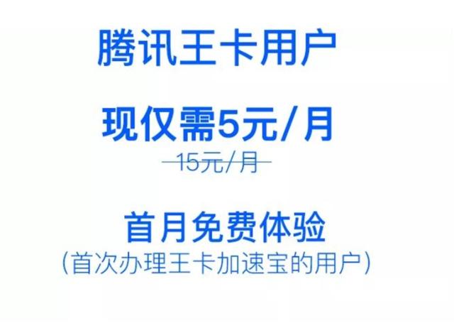 现在腾讯王卡表示,王卡用户目前仅需5元/月,首月免费体验。需要到“王卡助手”微信号— 特权 — 个人中心中点击王卡加速宝开启。