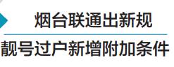 穿衣戴帽,各有所好”,同样拥有一个手机靓号,也成为很多消费者的追求。自6月上旬开始,拥有烟台联通靓号的消费者们陷入苦恼之中:烟台联通公司出台《关于优化码号过户、重启等业务规范的通知》,为手机靓号过户新增加了限制条款,引起消费者不满,被消费者质疑为“霸王条款”。