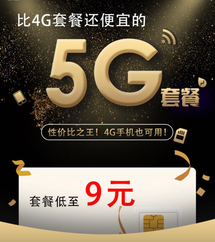 不过,以上套餐都不是目前最便宜的5G套餐,民营虚拟运营商“全民优打”,推出一款月费只需9元的超低价5G套餐,这个价格不仅远低于三大运营商5G套餐水平,甚至比市面上大部分4G套餐价格还要低。据了解,价格为9元的5G套餐内不包含流量,套餐外流量费为1.25元/1GB;但它也有19元包含5GB流量、29元包含10GB流量的版本,不过流量限速300Mbps。所以,仔细来看,这款声称“5G套餐”的套餐跟4G套餐并没有太大差别,不过只是个噱头罢了!