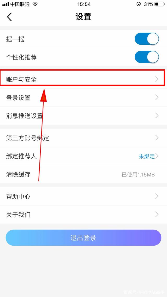 第四步:选择“账户与安全”选项,点击进入。