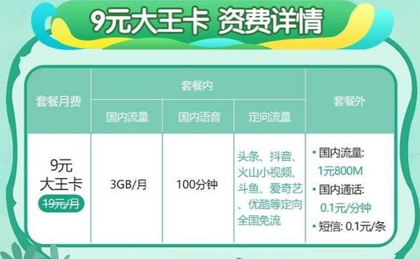 而且还有头条系列软件的定向流量使用,如果说你每个月使用头条系列的软件是非常多的,那么这款套餐还有头条系列软件的定向流量免费使用的功能,所以说对于条系用户来说,这款套餐也是比较划算,在套餐外还有1元800M流量和每分钟0.1元的通话资费。