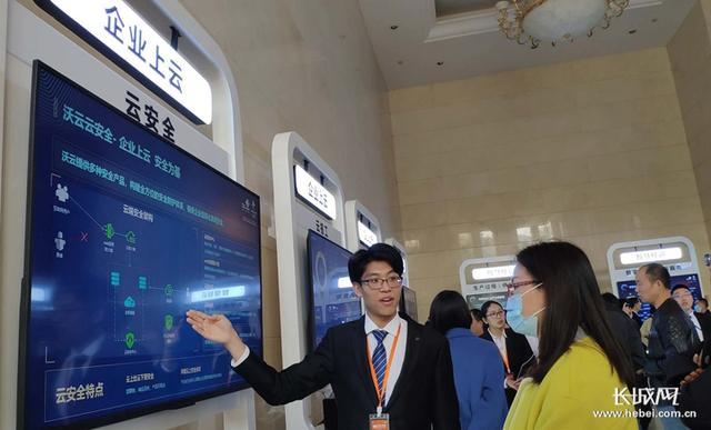 在产品展示区,工作人员向参会嘉宾介绍工业互联网的应用场景。长城网记者 郑建卫 摄