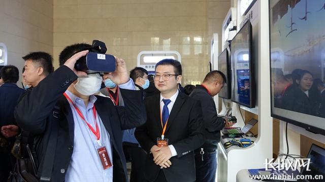 与会嘉宾在产品展示区试戴VR头盔。长城网记者 信贺宁 摄