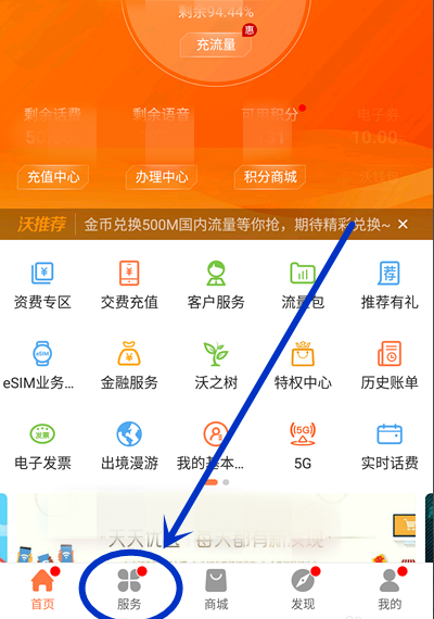 可以用运营商APP查询,具体方法是;以安卓手机中国联通操作为例: