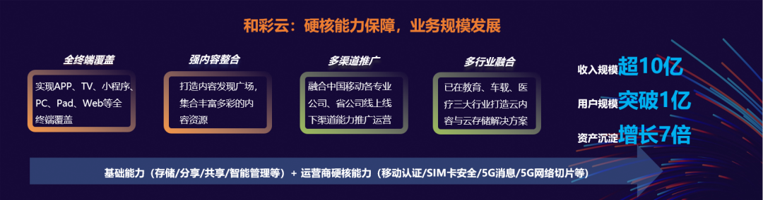 我们能够从和彩云生态计划中观察到一种趋势判断,即:重度场景是需求痛点和商业价值的交汇点。选择教育、医疗、办公、家庭、生活、娱乐六大领域,就是这个判断的必然结果。也是中国移动与合作伙伴能够创造百亿价值的关键着力点。