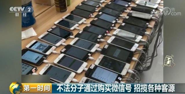 这是广东警方破获的一处微信号商的工作室,在这不大的房间里放着几百台正在养微信号的手机。这些手机都登录着微信,在无人操作的情况下,这些手机可以用预先设定的程序自动扫二维码添加好友,然后再自动发朋友圈。这就是所谓的“养号”。