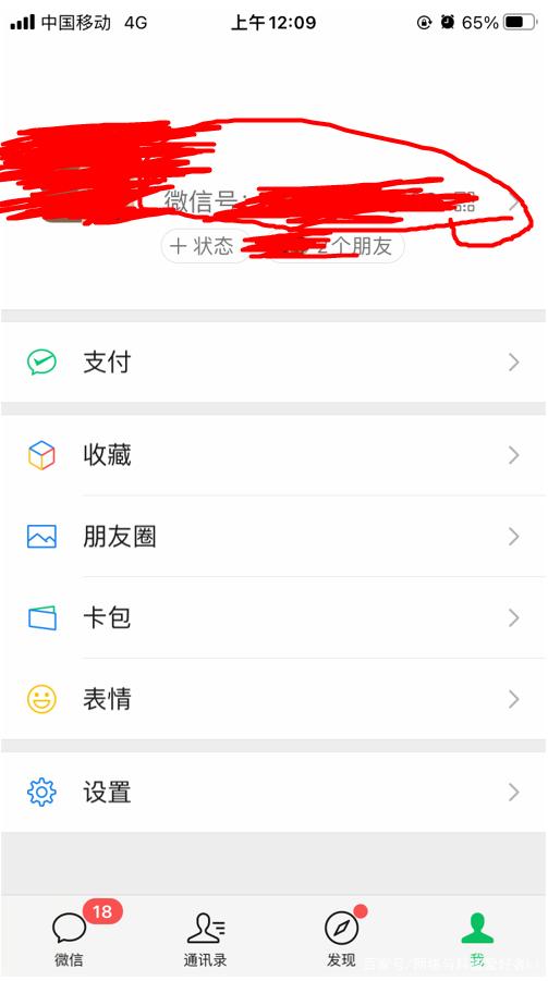 在进入”我“界面后,我们点击上方的微信号处的小箭头,进入个人信息界面。