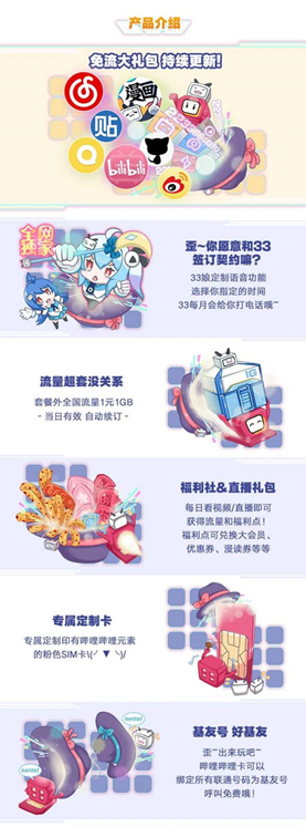 - 专属定制卡。专属定制印有bilibili元素的粉色SIM卡。