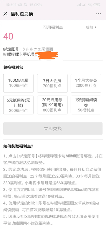 优点:B站免流+低月租+日租宝套餐超划算;2000福利点可以兑换一个月b站大会员,很容易攒到,每天刷刷视频就行了。免流量播放视频时会提示你“正在使用联通免流量播放”,否则会提示“免流量开启失败”并且停止加载视频,这时候一般退出B站客户端重新进就好了。