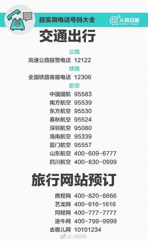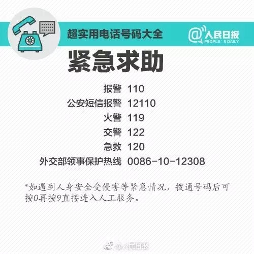 过双节,你是宅在家里,还是在外旅游?这100个实用电话号码你或许用得上!手机丢了,解绑支付宝打什么电话?收到诈骗短信,如何举报?网购出现问题,如何投诉?出国旅游遇到人身安全受侵害,怎么打电话求助?……100个超实用电话↓↓转发收藏,有备无患!