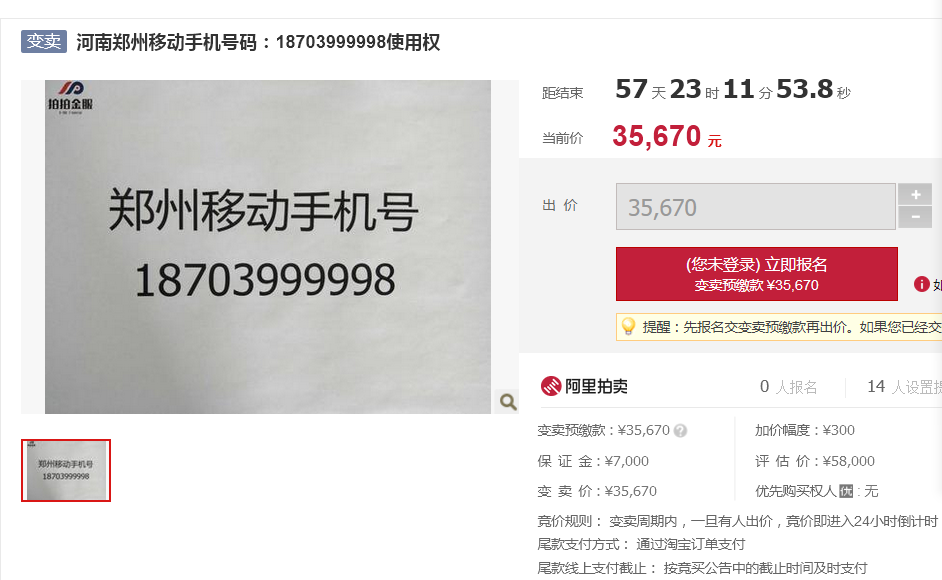 18703999998手机号码使用权,承诺套餐送话费138元,合约期12个月,2020年11月14日结束,合约期内套餐不能高转低。(详见评估报告)