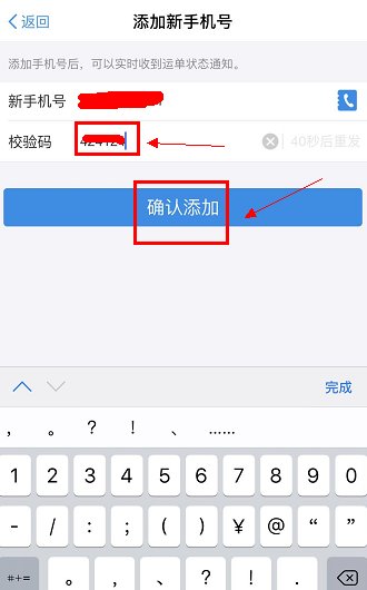 6、输入收到的校验码,点击下方的确认添加按钮,如下图所示。