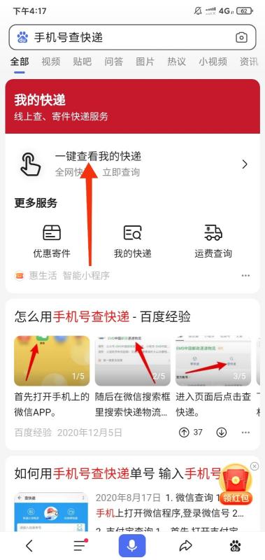 2.点击一键查看我的快递。