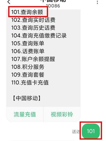 4、系统再次回复信息,询问要查询的内容,找到余额101发送。