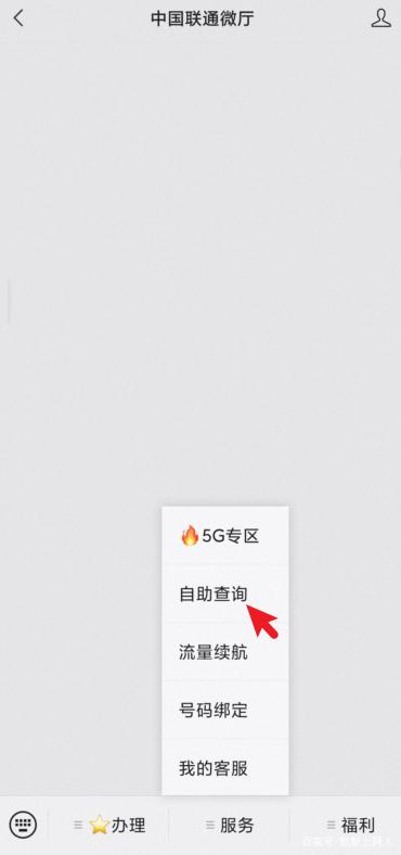 1、在微信【中国联通微厅】中点击【服务—自助查询】。