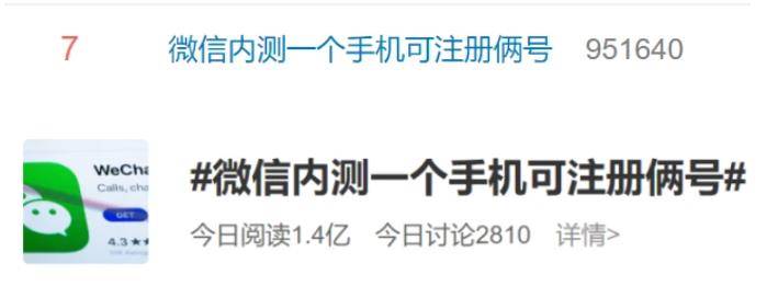 今天,一个关于微信的消息又冲上了热搜,微信内测一个手机可注册俩号。这是许多网友非常期待的一个功能,不过目前还处于内测阶段,并没有开放给所有用户。