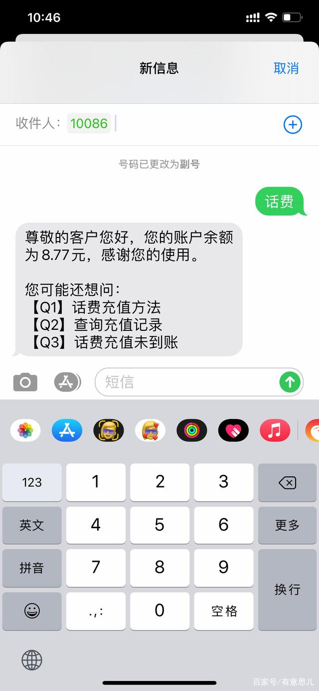 以iPhone为例,在收件人输入框里键入10086,然后编辑“话费”,并用本机号码发送。发送成功后,10086会向您发送一条账户余额情况的信息。