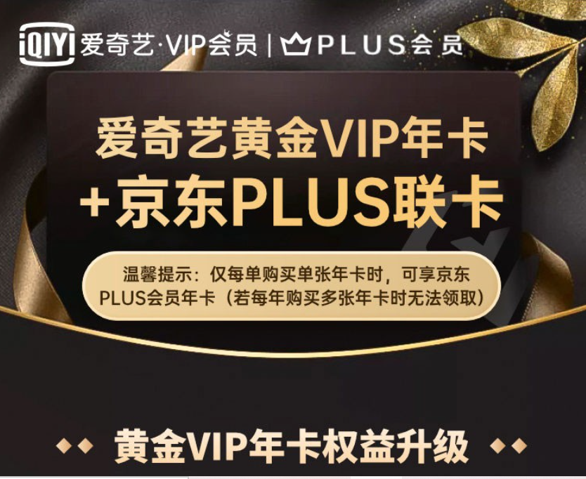 京东PLUS+爱奇艺 VIP年卡限时1天5.5 折 138元支持手机号码充值