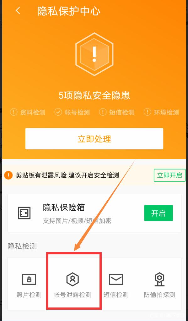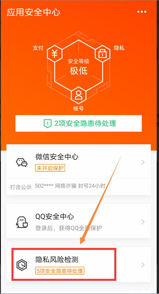 找到“隐私风险检测”,点击进去,就进入到“隐私安全中心”。
