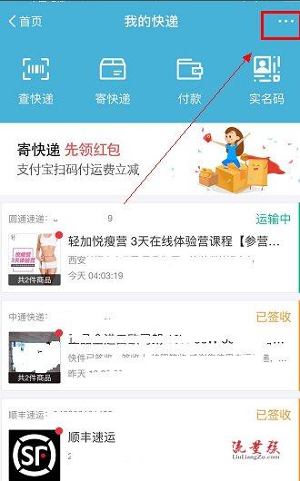 2、进入我的快递界面,点击右上角的三个点,如下图所示。