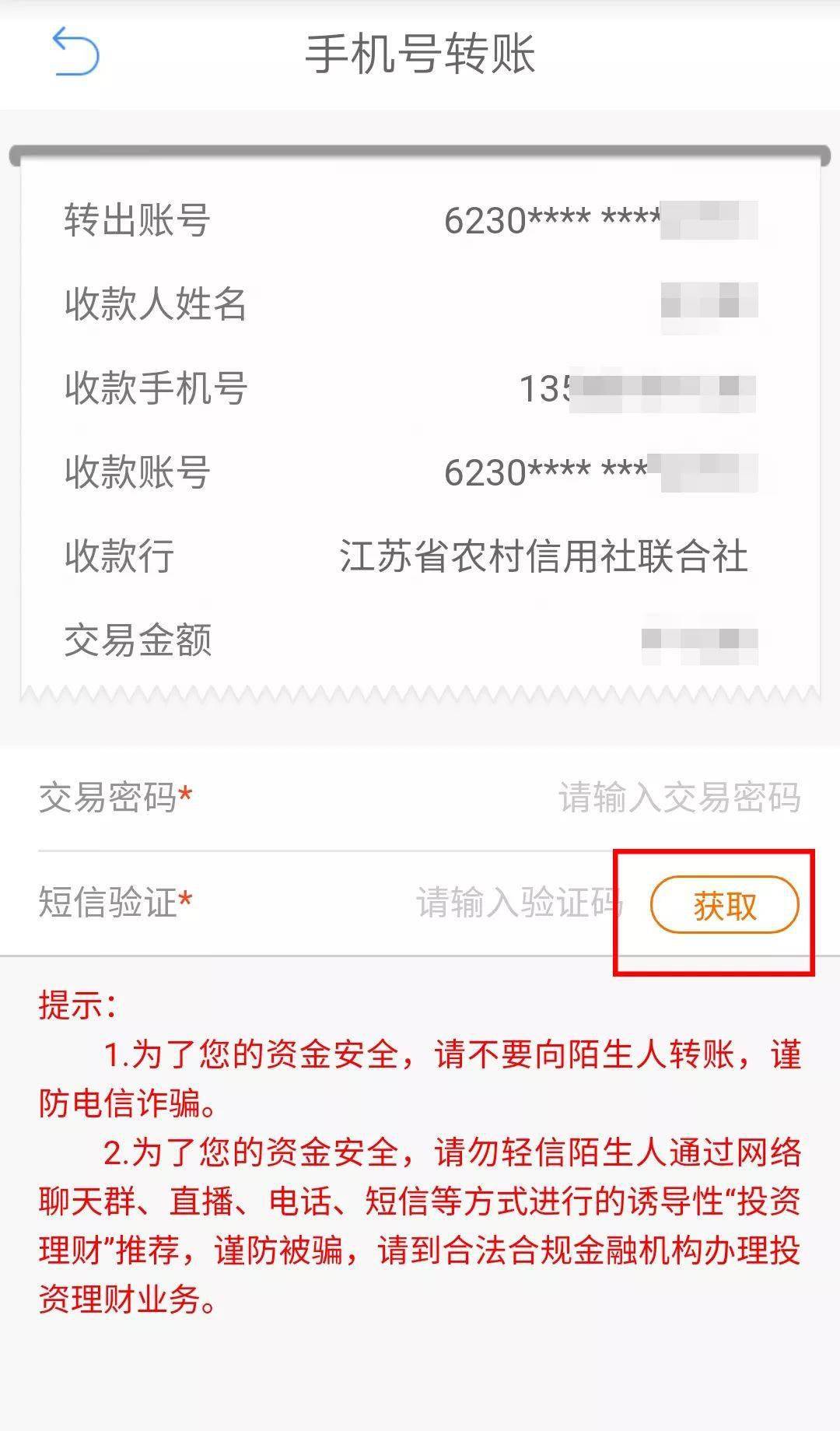 在 “江苏农商银行”手机银行完成手机号码与本行账户的关联绑定,即可通过手机号码 接收汇款。