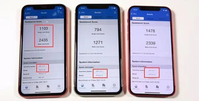 这件事闹得沸沸扬扬,国外的数码博主也进行了测试。用iPhone XR、iPhone 11和 iPhone 12三款手机升级iOS 14.5.1,而结果也确实像网友们反应的那样,升级后的iPhone 11、iPhone 12的性能均不如多年前发布的iPhone XR。