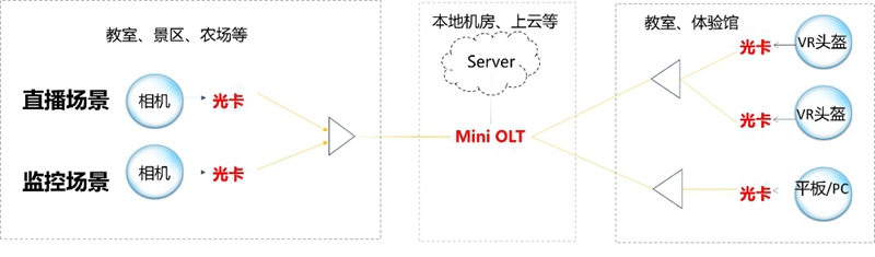 本次中国电信四川公司联合华为公司,创新打造了光纤到终端的“光卡”解决方案,利用光纤速率高、传输距离远、抗干扰强、光纤轻柔美观体积小等特点,为相机、VR头盔等终端设备提供稳定的带宽。“光卡”方案除在直播场景中发挥重要作用外,在需要高带宽、低时延、密集接入的场景中,如VR教室、VR体验馆场景中,也将发挥重要作用,保障每一位VR用户的极致体验。