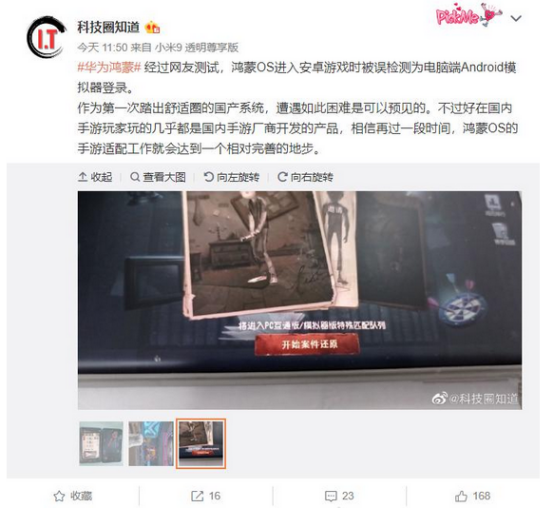 之前小编已经写过一篇《鸿蒙2.0体验感胜过安卓!但网友升级后游戏账号却没了?》,来介绍鸿蒙2.0系统的优劣势,其中说到该系统在玩一些安卓游戏时会被检测为“电脑端模拟器”,登录受到限制。另外在游戏进行中也存在着一定的卡顿问题,但毕竟鸿蒙系统仍在测试阶段,刚开始的时候肯定会受到不小的限制。而正式版预计在今年6月2日全面上线。
