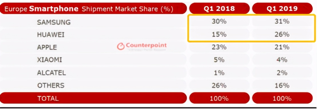 第一,是因为华为的被迫“让步”。华为早在19年夺下欧洲第二,占欧洲市场份额26%,到2020年4月出货量就达到了世界第一,如果不是遭到了限制,那么守住第二名的地位肯定不是问题。